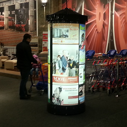 Der starke Rückgriff auf hochwertige Präsentations-Werbeträger ist eine Entwicklung, die sich in den kommenden Jahren noch verstärken wird, trotz rückläufiger Ausgaben – z.B. in der klassischen Plakatwerbung. Durch Ihre Exklusivität treffen sie den Nerv der Zielgruppe und sind damit ein werbewirksames Medium. Profitieren Sie von diesem Trend. Unsere modernen Werbemedien steigern Aufmerksamkeits- und Kontaktwerte für Ihre Produkte und Dienstleistungen. Ein optimales Kosten-/ Nutzenverhältnis und geringe Streuverluste sprechen für den Einsatz unserer Werbedisplays.